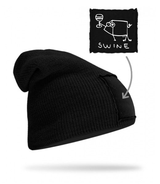 We make sustainable UAX clothing! - hand sewn in the Czech Republic uaxMen uaxAll productsHats and HeadbandsKNITTED HAT BEANIEdesign 1323 - SWINEBLACK/BLACK