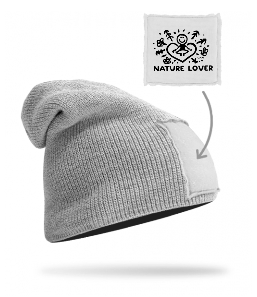 Quality knitted hat BEANIE unisex for man with design 1325 NATURE LOVER in color GREY/WHITE