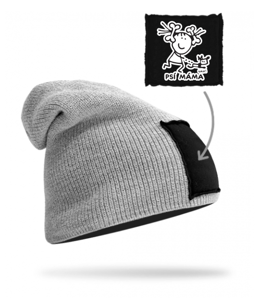 Quality knitted hat BEANIE unisex for man with design 1330 PSÍ MÁMA in color GREY/BLACK