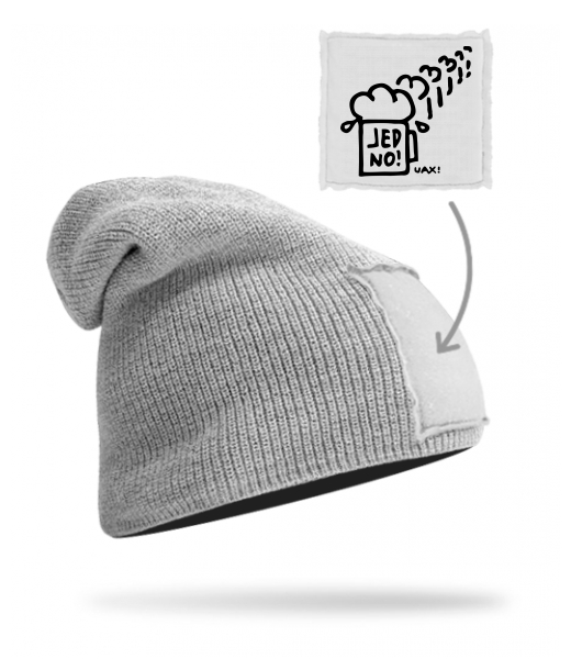 We make sustainable UAX clothing! - hand sewn in the Czech Republic uaxMen uaxAll productsHats and HeadbandsKNITTED HAT BEANIEdesign 1340 - JEDNOGREY/WHITE
