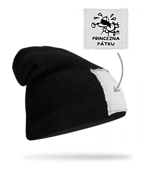 Quality knitted hat BEANIE unisex for man with design 1349 PRINCEZNA PÁTKU in color BLACK/WHITE