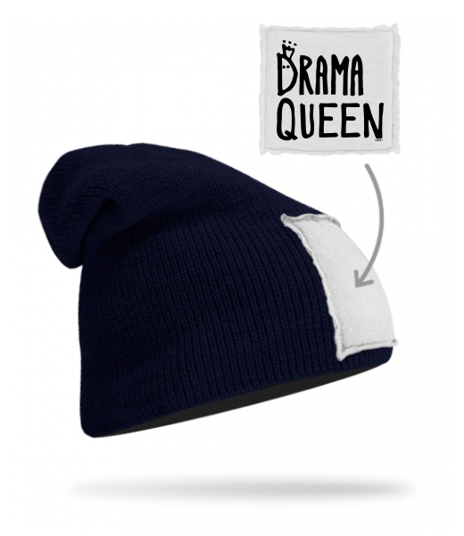 Quality knitted hat BEANIE unisex for man with design 1350 DRAMA QUEEN in color DARK NAVY/WHITE