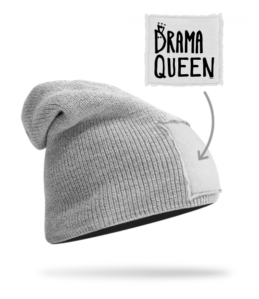 Quality knitted hat BEANIE unisex for man with design 1350 DRAMA QUEEN in color GREY/WHITE