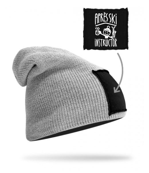 We make sustainable UAX clothing! - hand sewn in the Czech Republic uaxMen uaxAll productsHats and HeadbandsKNITTED HAT BEANIEdesign 1367 - APRÉS SKI INSTRUCTORGREY/BLACK