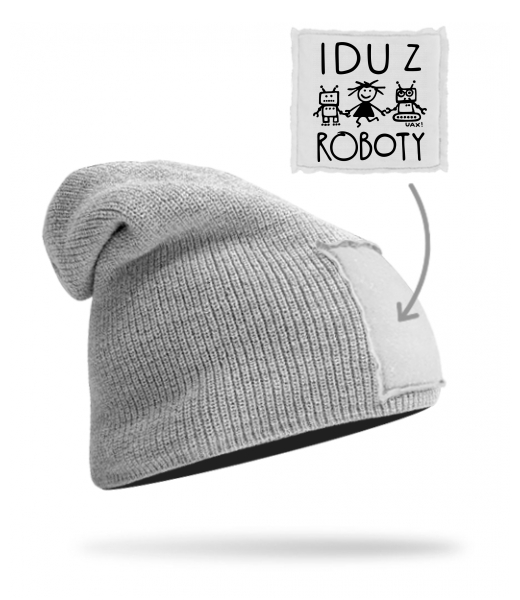 We make sustainable UAX clothing! - hand sewn in the Czech Republic uaxMen uaxAll productsHats and HeadbandsKNITTED HAT BEANIEdesign 1370 - IDU Z ROBOTYGREY/WHITE
