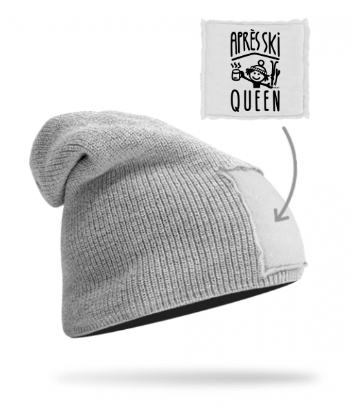 Quality knitted hat BEANIE unisex for man with design 1371 APRÉS SKI QUEEN in color GREY/WHITE