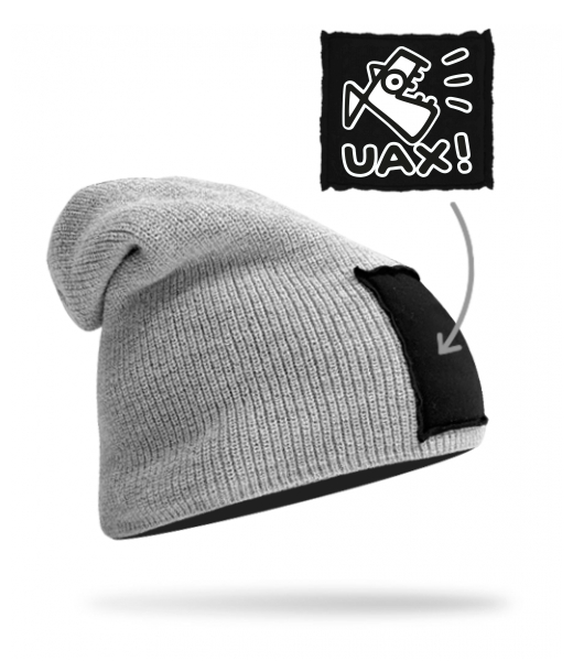 We make sustainable UAX clothing! - hand sewn in the Czech Republic uaxMen uaxAll productsHats and HeadbandsKNITTED HAT BEANIEdesign 412 - LOGO UAX! SMALLGREY/BLACK