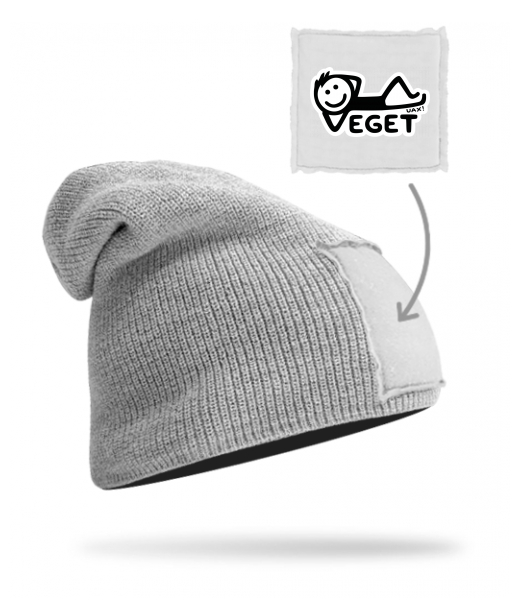 Quality knitted hat BEANIE unisex for man with design 468 VEGET in color GREY/WHITE