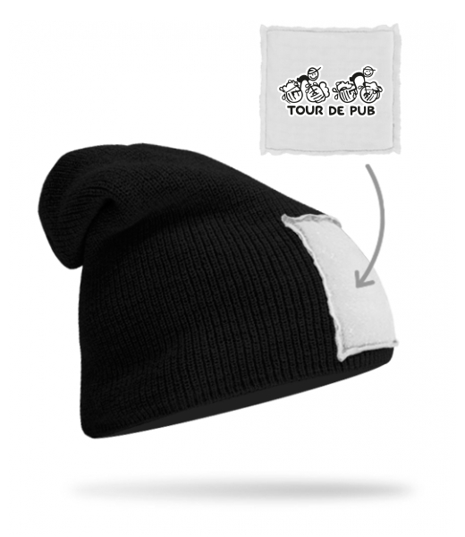 Quality knitted hat BEANIE unisex for man with design 513 TOUR DE PUB in color BLACK/WHITE