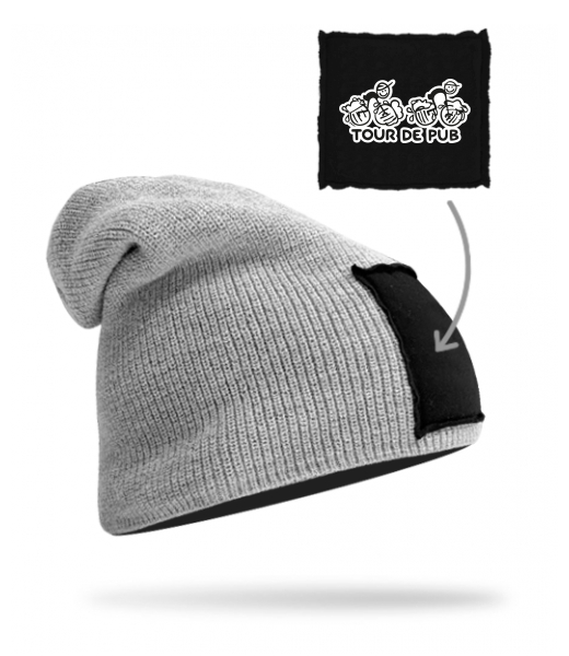 Quality knitted hat BEANIE unisex for man with design 513 TOUR DE PUB in color GREY/BLACK