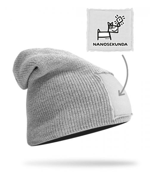 We make sustainable UAX clothing! - hand sewn in the Czech Republic uaxMen uaxAll productsHats and HeadbandsKNITTED HAT BEANIEdesign 516 - NANOSEKUNDAGREY/WHITE