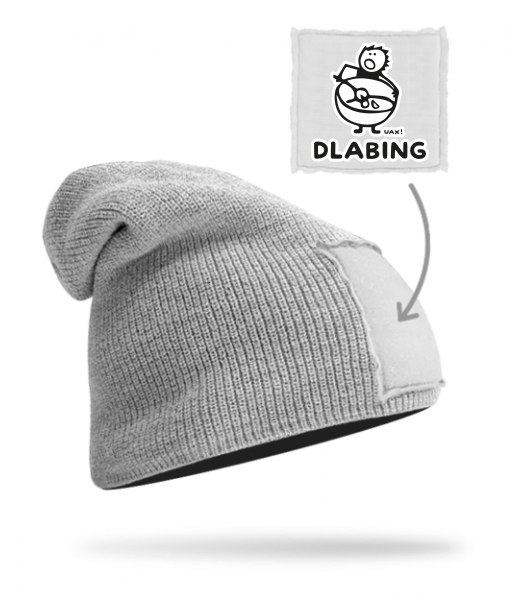 Quality knitted hat BEANIE unisex for man with design 545 DLABING in color GREY/WHITE
