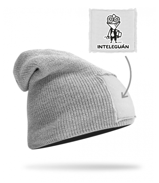Quality knitted hat BEANIE unisex for man with design 547 INTELEGUAN in color GREY/WHITE