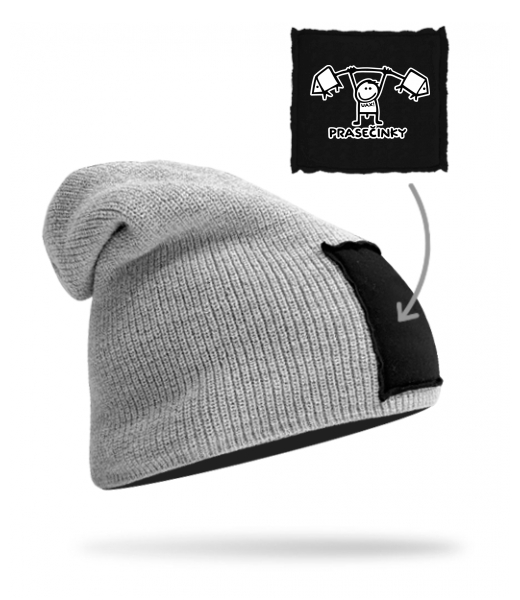 Quality knitted hat BEANIE unisex for man with design 584 PRASECINKY in color GREY/BLACK