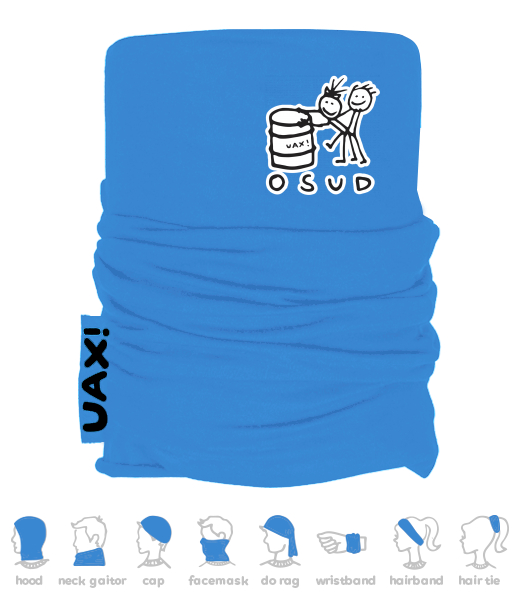 Multifunctional cotton scarf with UAX print! Made of 100% cotton, on the front of the print selection. Choice of many colors. Wrist bandages are stitched and silk-screen printed in the Czech Republic!