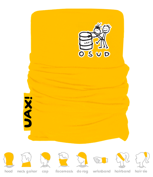 Multifunctional cotton scarf with UAX print! Made of 100% cotton, on the front of the print selection. Choice of many colors. Wrist bandages are stitched and silk-screen printed in the Czech Republic!