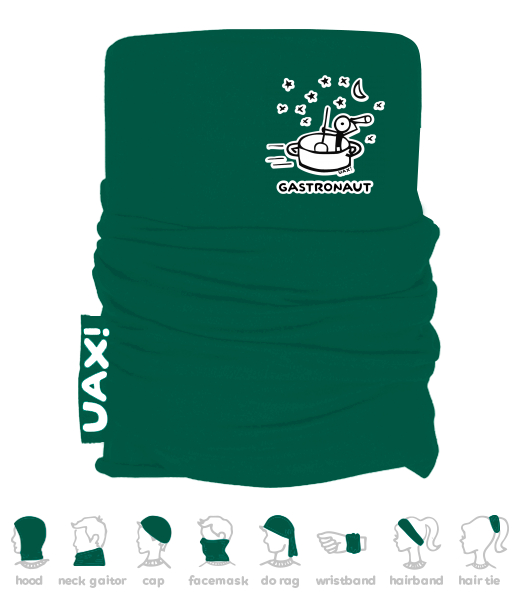 We make sustainable UAX clothing! - hand sewn in the Czech Republic uaxMen uaxAll productsMultifunctional scarvesMULTIFUNCTION COTTON SCARFdesign 1058 - GASTRONAUTUNIVERSITY GREEN