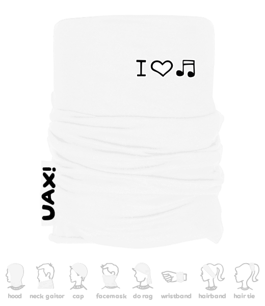 We make sustainable UAX clothing! - hand sewn in the Czech Republic uaxMen uaxAll productsMultifunctional scarvesMULTIFUNCTION COTTON SCARFdesign 1067 - I LOVE MUSIC