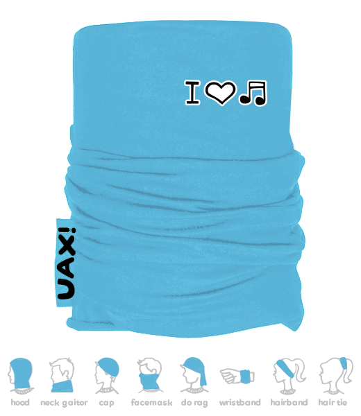 We make sustainable UAX clothing! - hand sewn in the Czech Republic uaxMen uaxAll productsMultifunctional scarvesMULTIFUNCTION COTTON SCARFdesign 1067 - I LOVE MUSICBLUE ATOLL