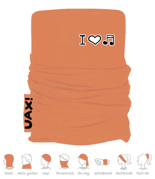 We make sustainable UAX clothing! - hand sewn in the Czech Republic uaxMen uaxAll productsMultifunctional scarvesMULTIFUNCTION COTTON SCARFdesign 1067 - I LOVE MUSICMANDARIAN ORANGE