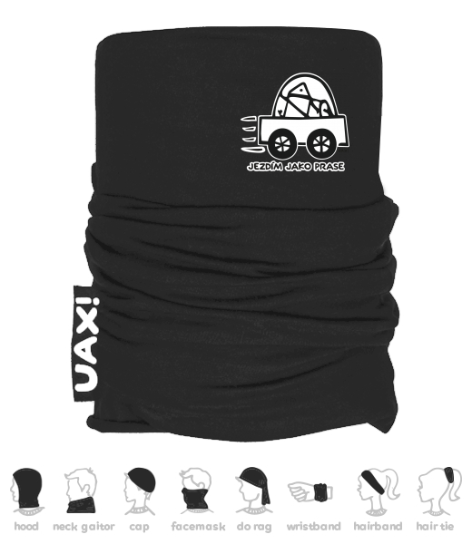 We make sustainable UAX clothing! - hand sewn in the Czech Republic uaxMen uaxAll productsMultifunctional scarvesMULTIFUNCTION COTTON SCARFdesign 1072 - JEZDÍM JAKO PRASEBLACK