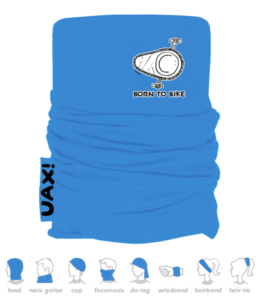 We make sustainable UAX clothing! - hand sewn in the Czech Republic uaxMen uaxAll productsMultifunctional scarvesMULTIFUNCTION COTTON SCARFdesign 1074 - BORN TO BIKECAPRI BLUE