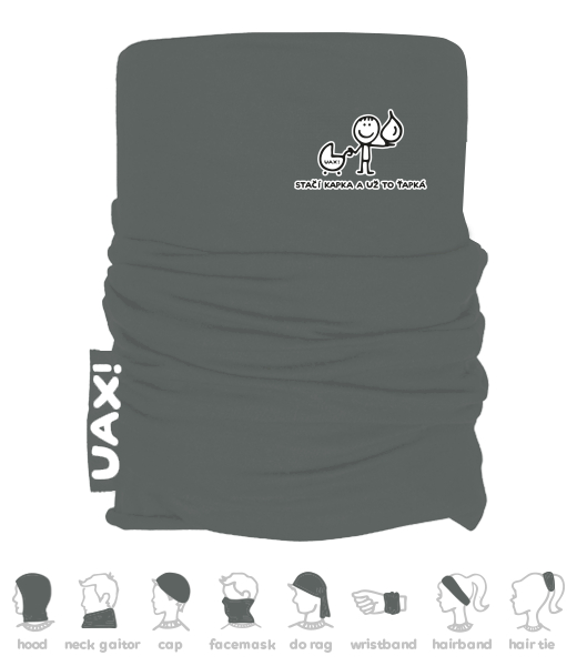 We make sustainable UAX clothing! - hand sewn in the Czech Republic uaxMen uaxAll productsMultifunctional scarvesMULTIFUNCTION COTTON SCARFdesign 1081 - STAČÍ KAPKA A UŽ TO ŤAPKÁDARK GRAY