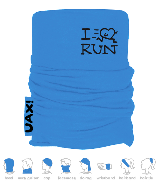 We make sustainable UAX clothing! - hand sewn in the Czech Republic uaxMen uaxAll productsMultifunctional scarvesMULTIFUNCTION COTTON SCARFdesign 1088 - I LOVE RUNCAPRI BLUE