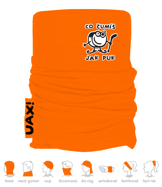 We make sustainable UAX clothing! - hand sewn in the Czech Republic uaxMen uaxAll productsMultifunctional scarvesMULTIFUNCTION COTTON SCARFdesign 1101 - ČUMÍŠ JAK PUKSIGNAL ORANGE