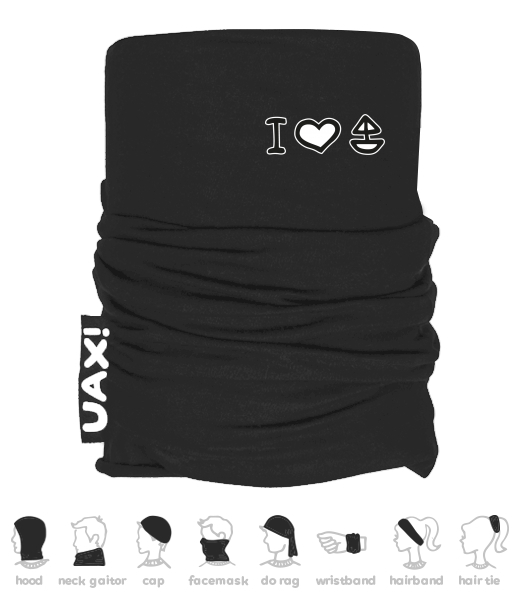 We make sustainable UAX clothing! - hand sewn in the Czech Republic uaxMen uaxAll productsMultifunctional scarvesMULTIFUNCTION COTTON SCARFdesign 1102 - I LOVE YACHTINGBLACK