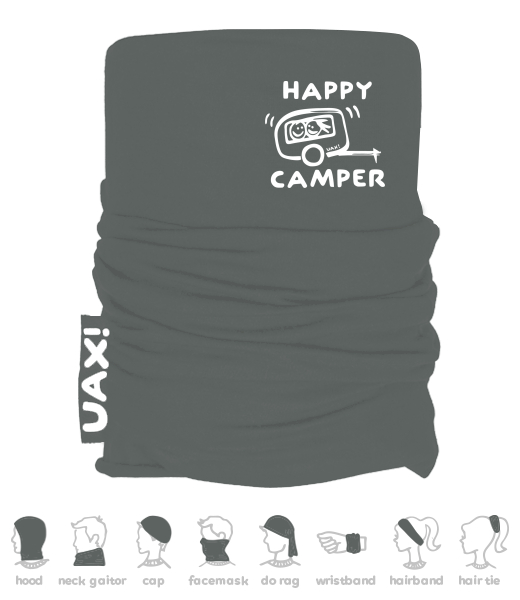 We make sustainable UAX clothing! - hand sewn in the Czech Republic uaxMen uaxAll productsMultifunctional scarvesMULTIFUNCTION COTTON SCARFdesign 1116 - HAPPY CAMPERDARK GRAY