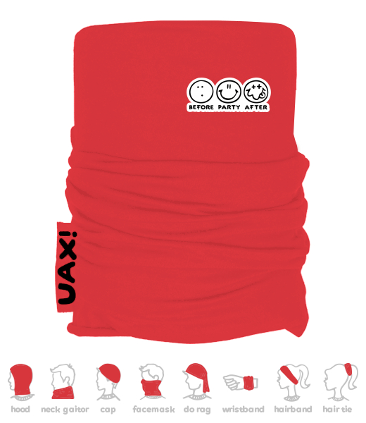 We make sustainable UAX clothing! - hand sewn in the Czech Republic uaxMen uaxAll productsMultifunctional scarvesMULTIFUNCTION COTTON SCARFdesign 1120 - BEFORE PARTY AFTERRED