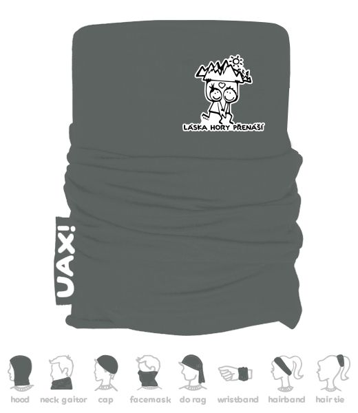Multifunctional cotton scarf with UAX print! Made of 100% cotton, on the front of the print selection. Choice of many colors. Wrist bandages are stitched and silk-screen printed in the Czech Republic!