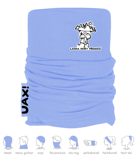 Multifunctional cotton scarf with UAX print! Made of 100% cotton, on the front of the print selection. Choice of many colors. Wrist bandages are stitched and silk-screen printed in the Czech Republic!