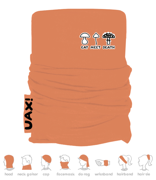We make sustainable UAX clothing! - hand sewn in the Czech Republic uaxMen uaxAll productsMultifunctional scarvesMULTIFUNCTION COTTON SCARFdesign 1177 - EAT MEET DEATHMANDARIAN ORANGE