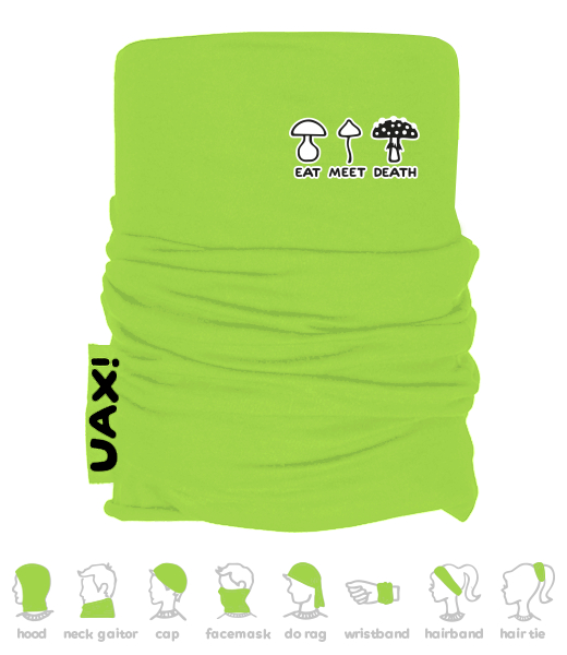 We make sustainable UAX clothing! - hand sewn in the Czech Republic uaxMen uaxAll productsMultifunctional scarvesMULTIFUNCTION COTTON SCARFdesign 1177 - EAT MEET DEATHPARROT GREEN