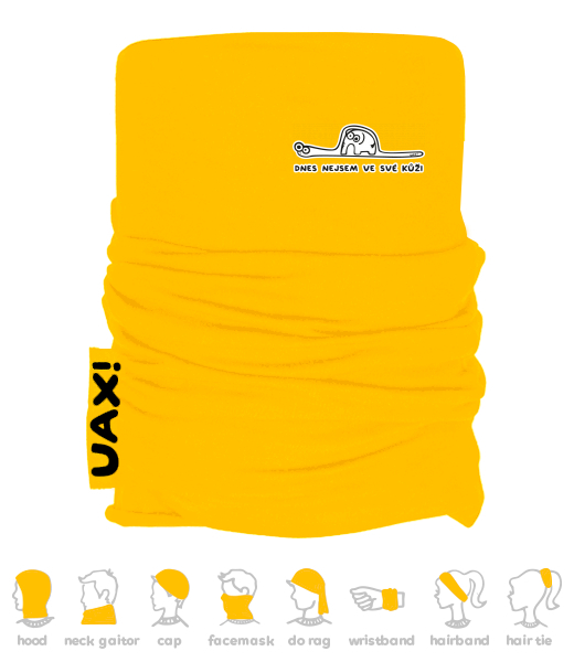 Multifunctional cotton scarf with UAX print! Made of 100% cotton, on the front of the print selection. Choice of many colors. Wrist bandages are stitched and silk-screen printed in the Czech Republic!