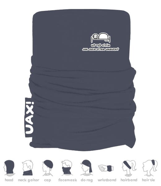We make sustainable UAX clothing! - hand sewn in the Czech Republic uaxMen uaxAll productsMultifunctional scarvesMULTIFUNCTION COTTON SCARFdesign 1200 - UŽ TEĎ CÍTÍM JAK JSEM ZÍTRA UNAVENÝGRAY INK