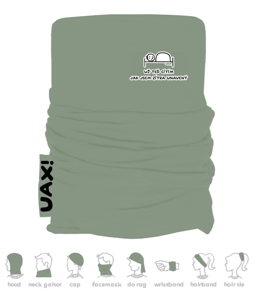 We make sustainable UAX clothing! - hand sewn in the Czech Republic uaxMen uaxAll productsMultifunctional scarvesMULTIFUNCTION COTTON SCARFdesign 1200 - UŽ TEĎ CÍTÍM JAK JSEM ZÍTRA UNAVENÝOLIVA