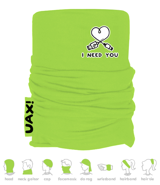 We make sustainable UAX clothing! - hand sewn in the Czech Republic uaxMen uaxAll productsMultifunctional scarvesMULTIFUNCTION COTTON SCARFdesign 1206 - I NEED YOU 2PARROT GREEN