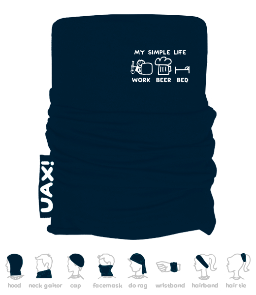 We make sustainable UAX clothing! - hand sewn in the Czech Republic uaxMen uaxAll productsMultifunctional scarvesMULTIFUNCTION COTTON SCARFdesign 1211 - MY SIMPLE LIFE WORK BEER BEDDARK NAVY