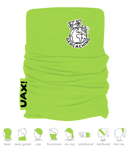 We make sustainable UAX clothing! - hand sewn in the Czech Republic uaxMen uaxAll productsMultifunctional scarvesMULTIFUNCTION COTTON SCARFdesign 1215 - GEOCACHINGPARROT GREEN