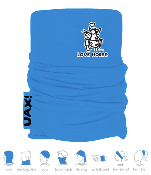 We make sustainable UAX clothing! - hand sewn in the Czech Republic uaxMen uaxAll productsMultifunctional scarvesMULTIFUNCTION COTTON SCARFdesign 1219 - LOVE HORSECAPRI BLUE