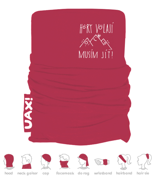 Multifunctional cotton scarf with UAX print! Made of 100% cotton, on the front of the print selection. Choice of many colors. Wrist bandages are stitched and silk-screen printed in the Czech Republic!
