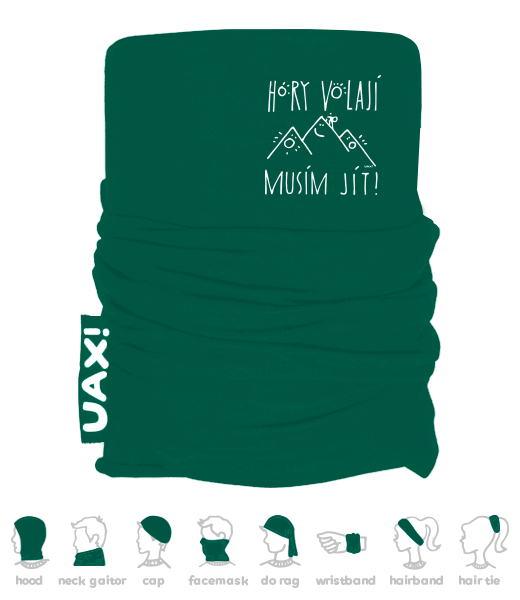 We make sustainable UAX clothing! - hand sewn in the Czech Republic uaxMen uaxAll productsMultifunctional scarvesMULTIFUNCTION COTTON SCARFdesign 1233 - HORY VOLAJÍ MUSÍM JÍTUNIVERSITY GREEN