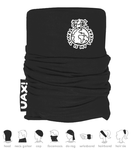 We make sustainable UAX clothing! - hand sewn in the Czech Republic uaxMen uaxAll productsMultifunctional scarvesMULTIFUNCTION COTTON SCARFdesign 1240 - TRAVEL IS MY THERAPYBLACK