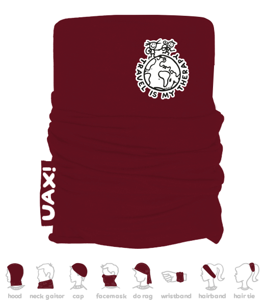 We make sustainable UAX clothing! - hand sewn in the Czech Republic uaxMen uaxAll productsMultifunctional scarvesMULTIFUNCTION COTTON SCARFdesign 1240 - TRAVEL IS MY THERAPYDARK RED
