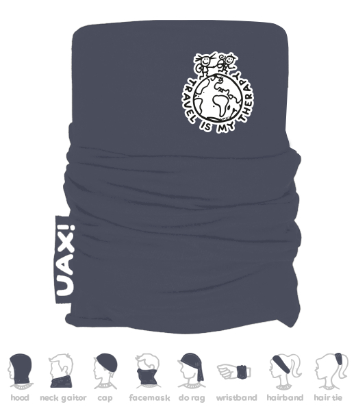 We make sustainable UAX clothing! - hand sewn in the Czech Republic uaxMen uaxAll productsMultifunctional scarvesMULTIFUNCTION COTTON SCARFdesign 1240 - TRAVEL IS MY THERAPYGRAY INK