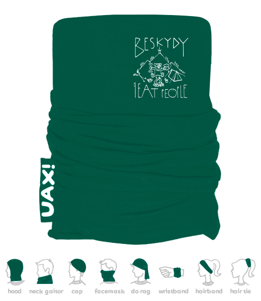 We make sustainable UAX clothing! - hand sewn in the Czech Republic uaxMen uaxAll productsMultifunctional scarvesMULTIFUNCTION COTTON SCARFdesign 1241 - I EAT PEOPLE BESKYDYUNIVERSITY GREEN