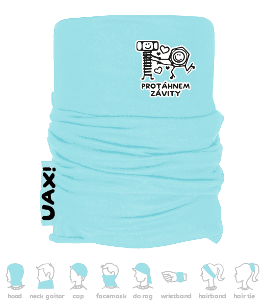 Multifunctional cotton scarf with UAX print! Made of 100% cotton, on the front of the print selection. Choice of many colors. Wrist bandages are stitched and silk-screen printed in the Czech Republic!